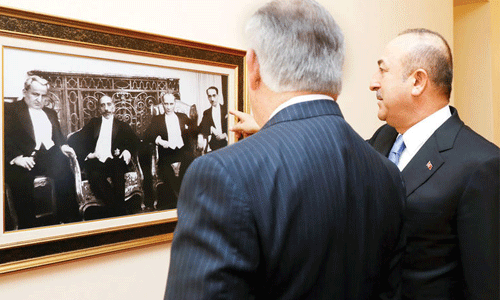 DIŞİŞLERİ Bakanı Mevlüt Çavuşoğlu, resmi ziyaret amacıyla Ankara’ya gelen ABD Dışişleri Bakanı Rex Tillerson ile Ankara Palas’ta görüştü. İkili ortak basın toplantısı öncesi Ankara Palas’ı gezdi. Bakan Çavuşoğlu, Ankara Palas’ın duvarında asılı bir Atatürk resmiyle ilgili olarak da Bakan Tillerson’a bilgi verdi.