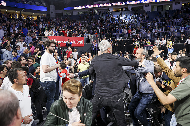 Türkiye Sigorta Basketbol Süper Ligi play-off yarı final serisi dördüncü maçında Anadolu Efes ile Fenerbahçe Beko arasında oynanan maçın ardından gerginlik yaşandı.