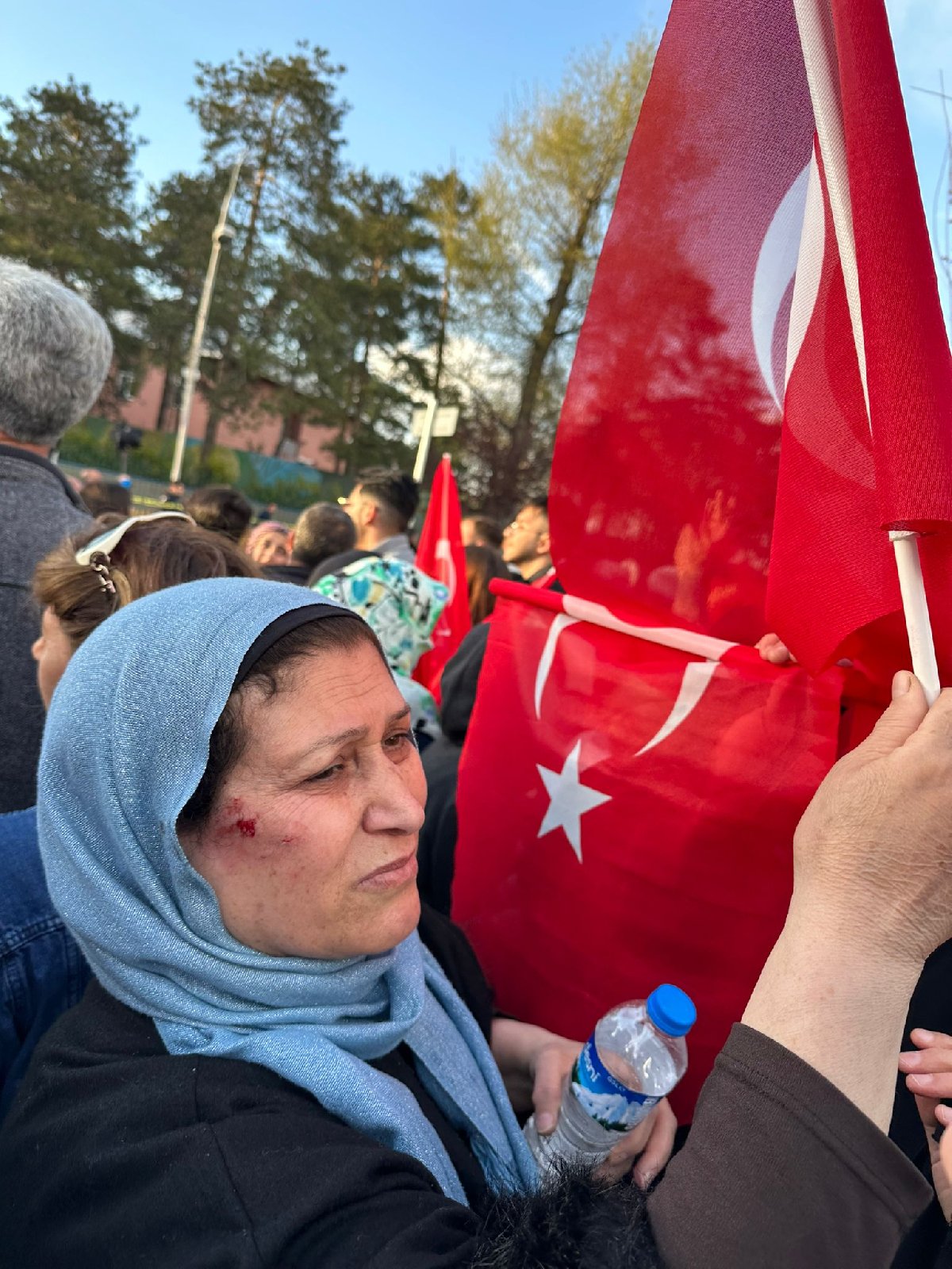 Sonrasında İmamoğlu'nun havalimanında başından yaralı bir kişiyle konuşurken videosu paylaşıldı.