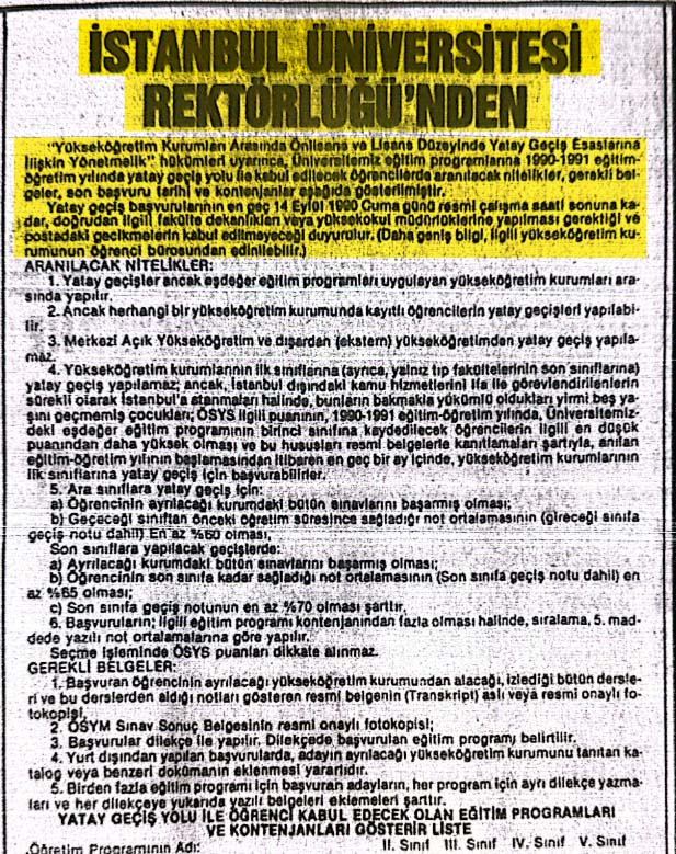 İstanbul Üniversitesi'nde yatay geçiş başvuruları