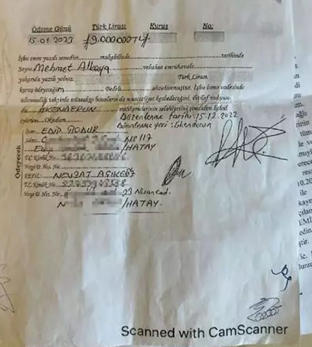 Hatay'ın Arsuz ilçesinde emlakçılık yapan Edip Bodur'un evine, 9 milyon TL'lik senetle icra tebligatı geldi. Bodur, tebligatta yer alan senetteki imzanın kendisine ait olmadığını, sahte olduğunu belirtip, avukatı aracılığı ile mahkemeye başvurdu. Mahkeme, icrayı durdurup, imzanın Bodur tarafından atılıp, atılmadığını araştırmak üzere kriminale gönderdi.