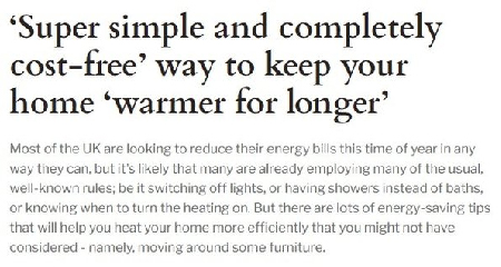 Gazete ayrıca İngilizlerin uzun perdelere veda etmesi gerektiğine yer verdi. Yere kadar inen perdelerin ısı kaynaklarını kapatacağını belirten gazete, bu perdelerin mümkün olduğunca kısa tutulması gerektiğini söyledi.