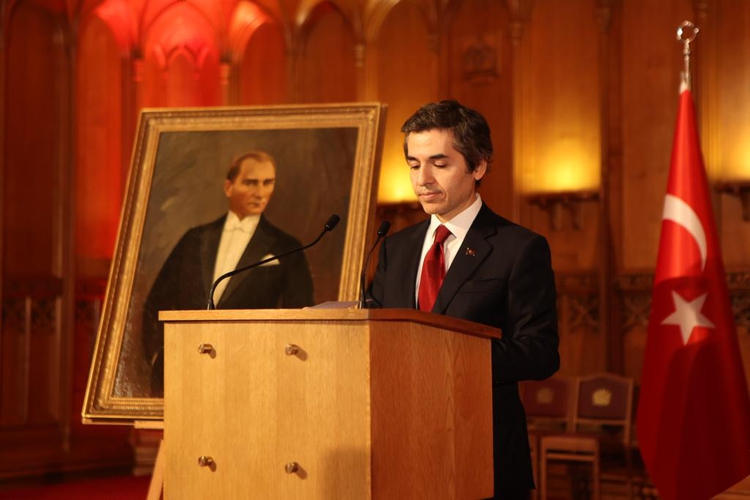 Resepsiyona ev sahipliği yapan Türkiye'nin Londra Büyükelçisi Osman Koray Ertaş, burada yaptığı konuşmada, "Ne mutlu ki Cumhuriyet'imizin 100. yılını Londra'da da haklı bir gurur, mutluluk ve coşkuyla kutluyoruz." ifadesini kullandı.