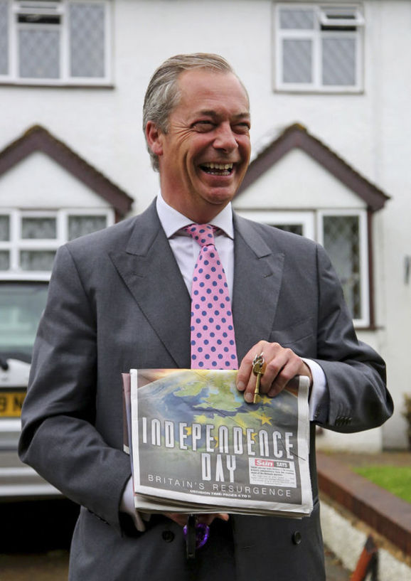 UKIP lideri Nigel Farage, elinde The Sun gazetesini tutuyor