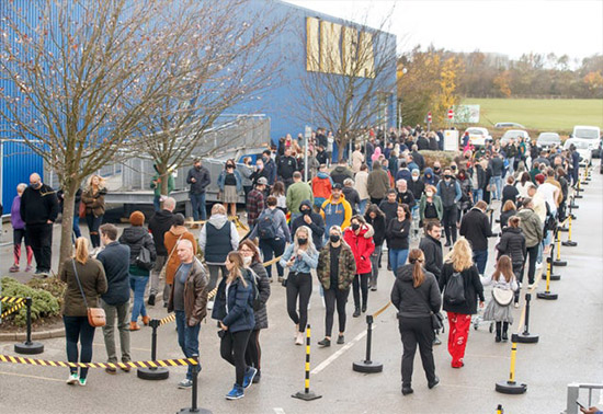 İngiltere Başbakanı Boris Johnson’ın İngiltere vatandaşlarına 2 Aralık'a kadar "evde kalmaları" talimatı verileceğini söylemesinden birkaç saat sonra yüzlerce alışverişçi pazar sabahı Leicester Costco'nun önünde sıraya girdi.