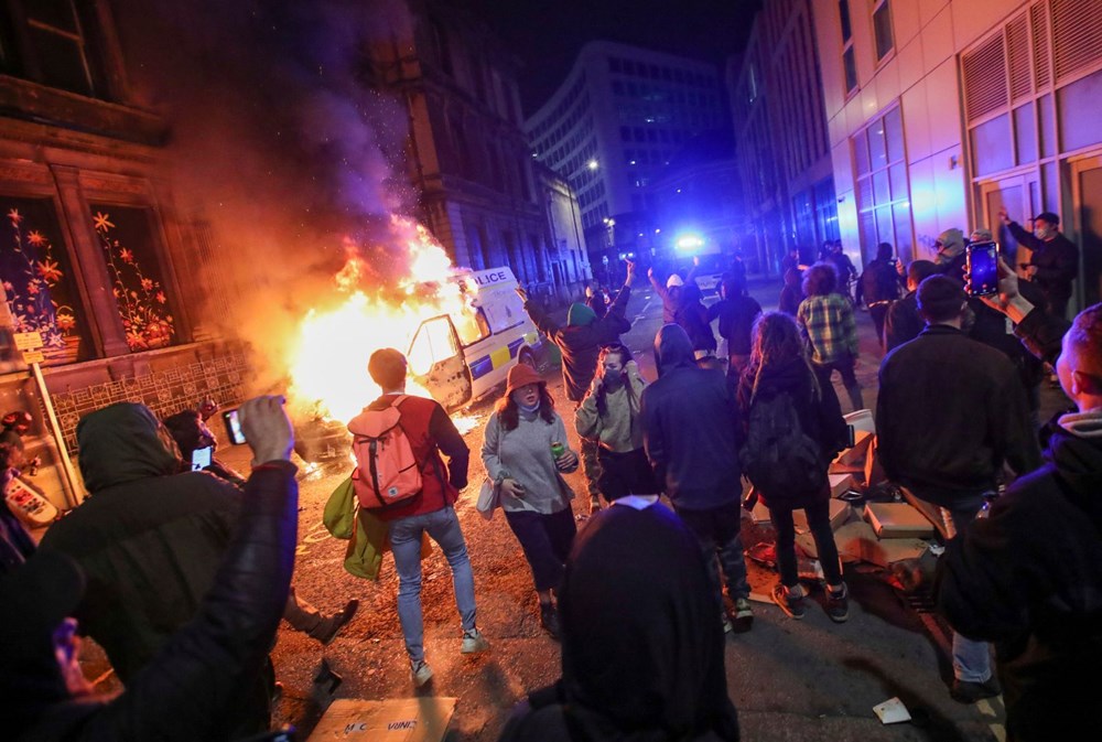 İngiltere'de polise protestolara müdahale için daha fazla yetki veren yasa tasarısına karşı Bristol kentinde düzenlen gösteri, şiddet olaylarına dönüştü.
