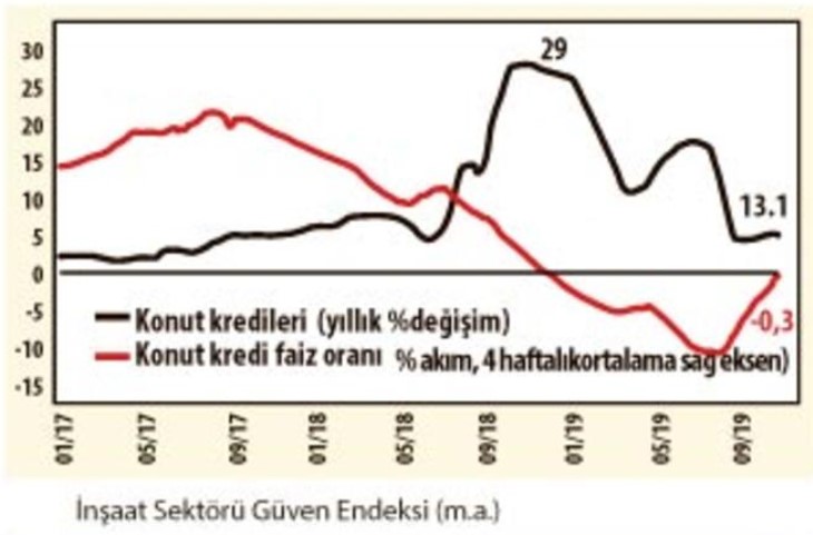 - Konut kredisi faiz oranlarında düşüş ise, sınırlı kalıyor. 8 Kasım haftası itibariyle konut kredisi faizleri % 13.01 iken, 4 haftalık ortalamalara göre % 13’ler seviyesinde. Sene başında % 28’ler seviyesinde idi.