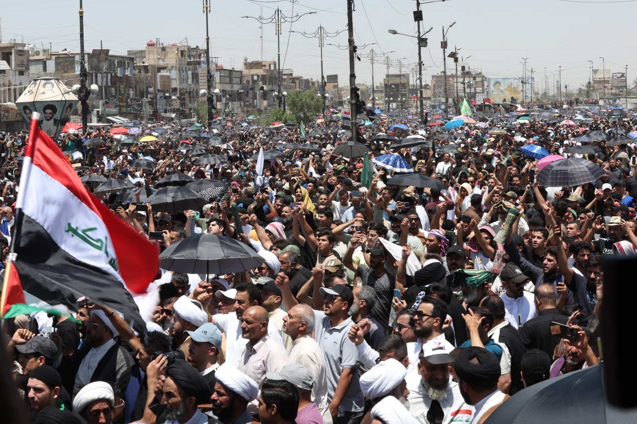 Irak’ta Şii siyasi ve dini lider Mukteda es-Sadr taraftarları, İsrail’in saldırılarını kınayarak İran’a destek gösterisi düzenledi.