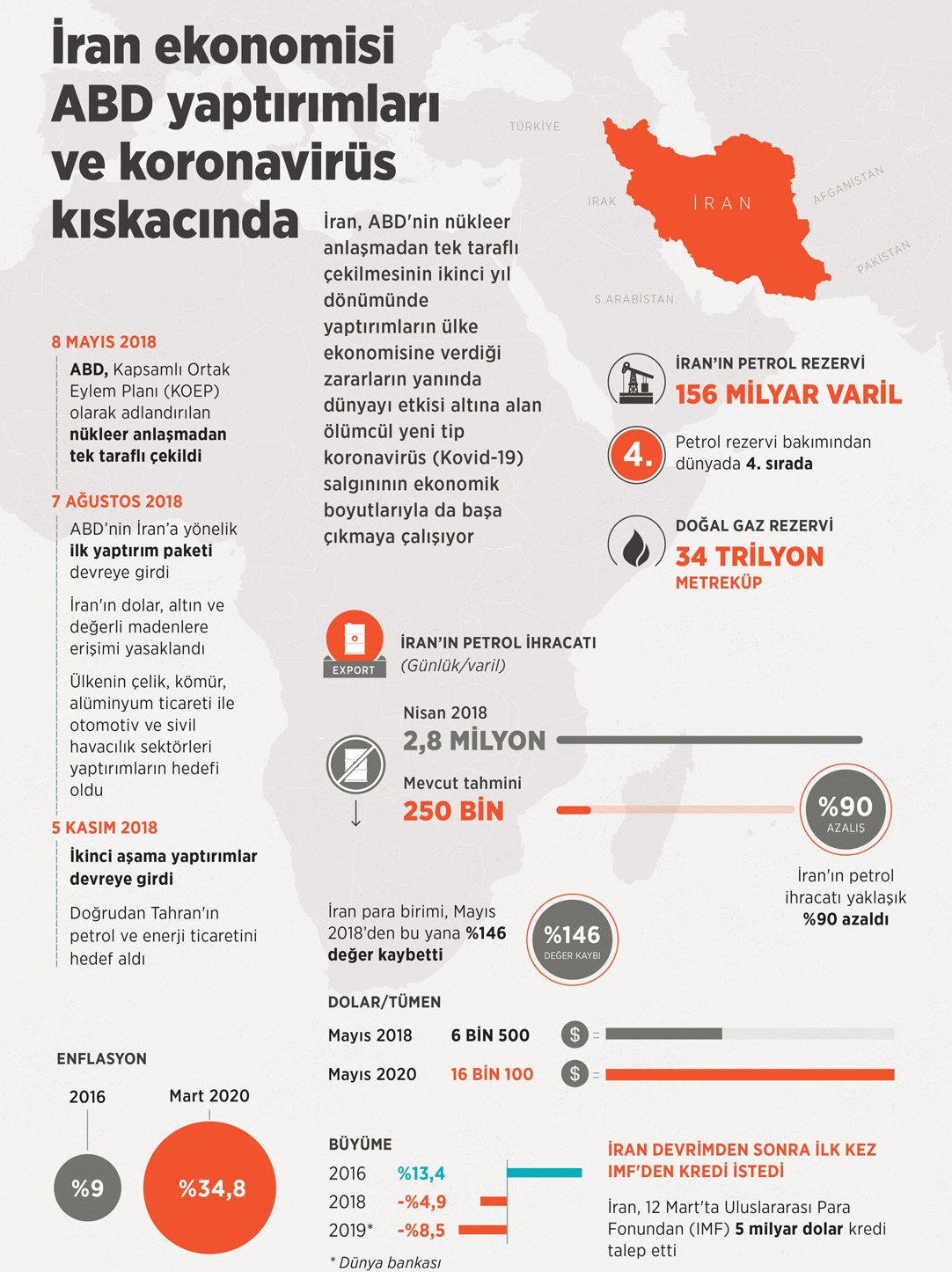 Yaptırımların yanında salgınla da mücadele eden İran'da ekonomik kaynaklar tükenme aşamasına gelince Tahran, 12 Mart'ta IMF'den 5 milyar dolar kredi talep etti. Böylece İran, 1979'daki devrimden sonra ilk kez IMF'nin kapısını çalmış oldu ancak bu talebin de ABD yönetimi tarafından engellenmeye çalışıldığı belirtiliyor.