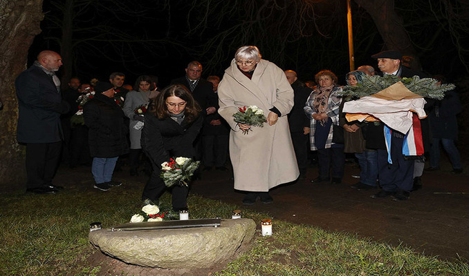 Katliamın gerçekleştiği evin önüne çelenk bırakılmasıyla başlayan tören, Ratzeburger caddesindeki anıtın önünde yapılan saygı duruşuyla devam etti.