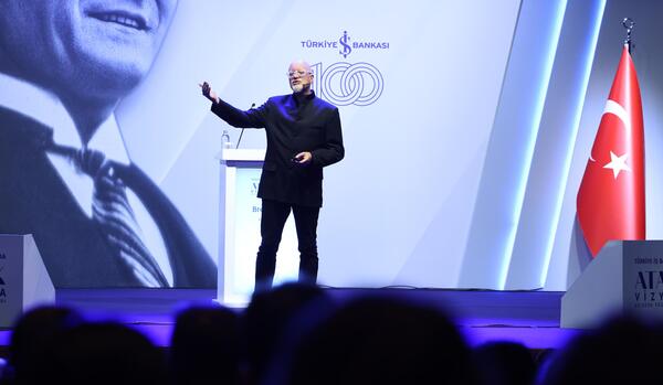 “Türkiye aktardığım bu akımlara ve teknolojinin getirdiği sonuçlara hazır mı? İlk kez teknolojinin gerisinde kalıp, teknolojinin kendisi değişirken aynı zamanda teknolojiye geçmeye çalışılan ilk dönem değil bu dönem… Aynı şeyi 100 sene önce de yaşadık. O zaman hayatta en hakiki mürşit ilimdi ama şimdi bir tek ilim değil. O ilmi alıp teknolojiye uygulamak gerekiyor. Burada İş Bankası'nın ilk baştaki rolü çok önemli. Niye? Çünkü İş Bankası, Türkiye'nin en büyük finansörü olarak ortaya çıktı ve yeni teknolojilerin gelmesinde, tarımda, sanayide önemli bir rol üstlendi. O zaman Türkiye başarılı oldu. Bugün hazır mı? Hayır, ne yazık ki hazır değil. Çünkü Türkiye, aynı dengesizlikleri çok daha ciddi bir şekilde yaşıyor. Türkiye, hiçbir zaman Çin, Güney Kore, Tayvan, Singapur gibi bir büyümeye ulaşamadı.“