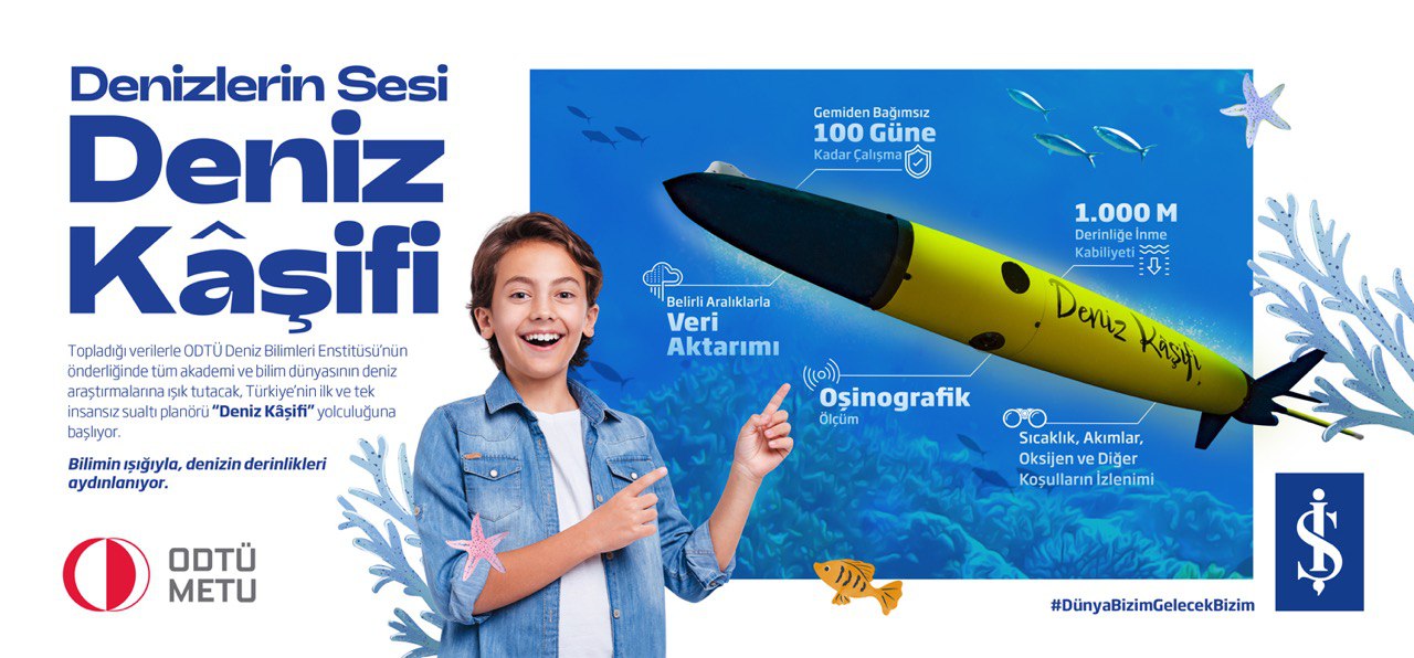 Türkiye İş Bankası ve Orta Doğu Teknik Üniversitesi (ODTÜ), denizlerimizdeki yaşama dair bilimsel ve akademik çalışmalara destek olmak üzere bir iş birliğine gitti. Denizlerle ilgili araştırma yapan bilim insanları, akademisyenler ve araştırmacılar açısından büyük önem taşıyan iş birliği kapsamında, İş Bankası, Fransa’da üretilen ve “Deniz Kâşifi” adı verilen, ülkemizde ilk kez kullanılacak insansız su altı planörü glider cihazını, ODTÜ bünyesindeki Deniz Bilimleri Enstitüsü’nün kullanımına sundu.