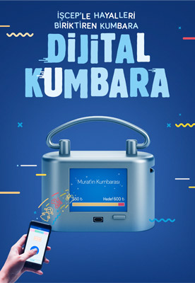 Türkiye İş Bankası, nesillerdir çocukların severek kullandığı kumbarayı, 18 yaşından küçüklerin dijital yoldan da para biriktirmesine olanak sağlayacak şekilde Dijital Kumbara olarak hizmete sunuyor. Dijital Kumbara’yı, İşCep kullanan İş Bankası müşterileri şubelere başvurarak çocukları için alabiliyor. Dijital Kumbara’nın kullanılmaya başlanması için İşCep kullanıcısı anne veya babanın çocukları adına vadesiz TL hesabı ve vadeli kumbara hesabı açması yeterli oluyor.