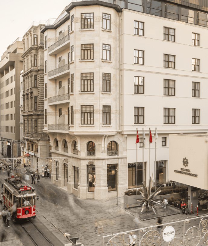 Beyoğlu'nun kültürel kimliğinin kıymetli öğelerinden biri olan, 1907 yılında zemin katı ticari amaçlı, diğer katları konut olarak inşa edilen tarihi bina, bodrum ve zemin katların yanı sıra biri teras 6 kattan oluşuyor. 1950 yılında İş Bankası mülkiyetine geçen bina, 63 yıl süresince Türkiye İş Bankası Beyoğlu Şubesi olarak hizmet verdi.