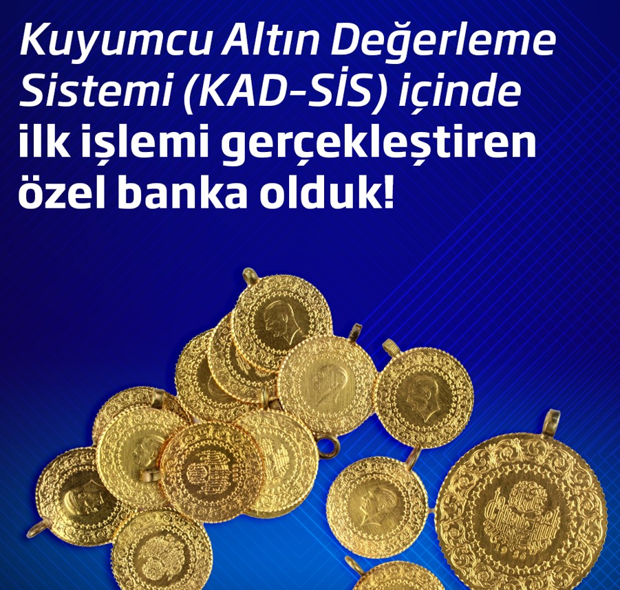 İş Bankası, yastık altında tutulan altınların ekonomiye kazandırılması amacıyla Hazine ve Maliye Bakanlığı öncülüğünde devreye alınan ve İstanbul Altın Rafinerisi (İAR) tarafından oluşturulan Kuyumcu Altın Değerleme Sisteminde (KAD-SİS) altın kaydileştirme işlemini gerçekleştiren ilk özel banka oldu.