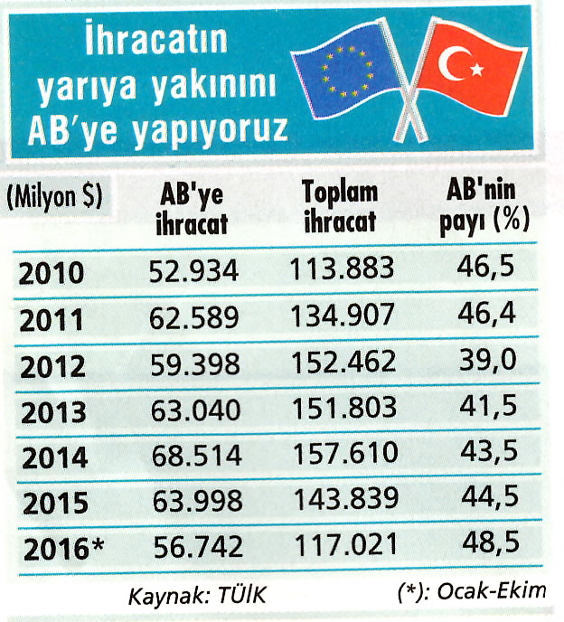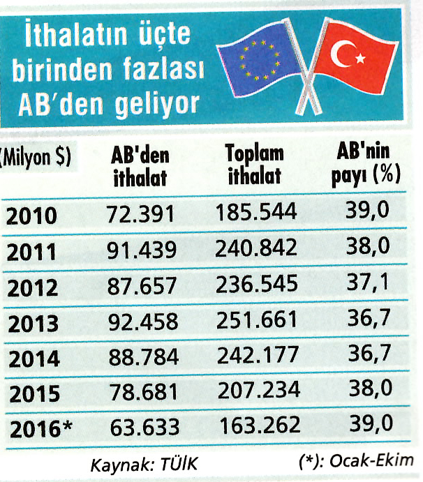 Türkiye ile AB arasında 1950’lere uzanan ilişkinin temelinde siyasetten çok gelişkin bir ekonomik işbirliği olması ise ilişkilerin tamamen kopmasını engelleyen en büyük etken. Nüfusu 500 milyonu aşan, 13 trilyon dolarlık ekonomik büyüklükle dünyada ikinci büyük ekonomik güç olan AB, Türkiye’nin en büyük ticari partneri konumunda. Öyle ki Türkiye ihracatının yüzde 49’u, ithalatının ise yüzde 39’u AB ülkeleri ile gerçekleştiriliy or. Türkiye’de faaliyette olan 17 bin yabancı şirketin yüzde 70’i de Avrupalı şirketlerden oluşuyor. Dolayısıyla müzakerelerin resmen durdurulması her iki tarafın özel sektör temsilcileri için kara bir tablo demek. Bununla birlikte AB hedefinden uzaklaşan Türkiye, önümüzdeki yıllarda doğrudan yabancı sermaye çekmek konusunda bugünleri mumla arayabilir.