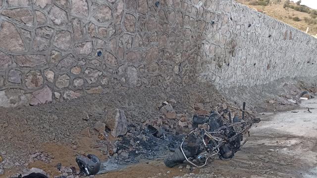 Motosiklet, kazadan sonra alev alarak küle döndü