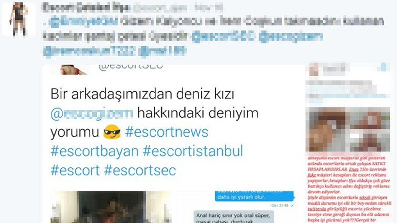 İnternet ve sosyal medya hesapları üzerinden escort kızlarla buluşanlar, mağdur olduklarını iddia ederek Twitter’da şikayet hesabı oluşturdu. “Escort İfşa” ismi verilen hesaplarda escortlar tarafından dolandırılan veya şantaja uğrayanların şikayetleri yer alıyor.