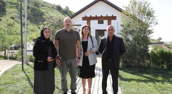 Laçın'e giden Cumhurbaşkanı Aliyev, dönüş yapan ailelerle bir araya gelerek, onlara devlet tarafından yapılan evlerinin anahtarlarını takdim etti.
