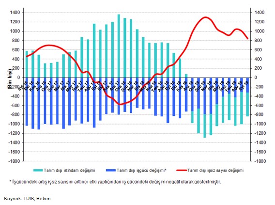 Tarım dışı istihdam yıllık olarak düşmeye devam ediyor