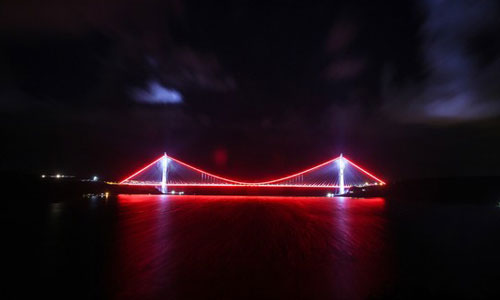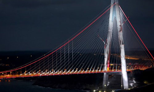Yapımı 39 ay gibi kısa bir sürede tamamlanan Yavuz Sultan Selim Köprüsü ve Kuzey Çevre Otoyolu’nun açılışı gerçekleşti. Açılışı gerçekleşen köprünün ışıkları havanın kararmasıyla birlikte ilk kez yandı.
