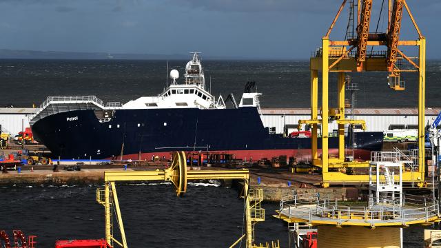 İskoçya'nın başkenti Edinburgh'daki Imperail tersanesindeki kuru havuzda bulunan "Petrel" isimli yat, sert rüzgarlar nedeniyle yerinden oynayarak yaklaşık 45 derece yan yattı.