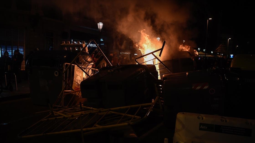 Şiddet yanlısı bazı gruplar, çevredeki dükkanlara saldırarak, çöp bidonlarını ateşe verdi.