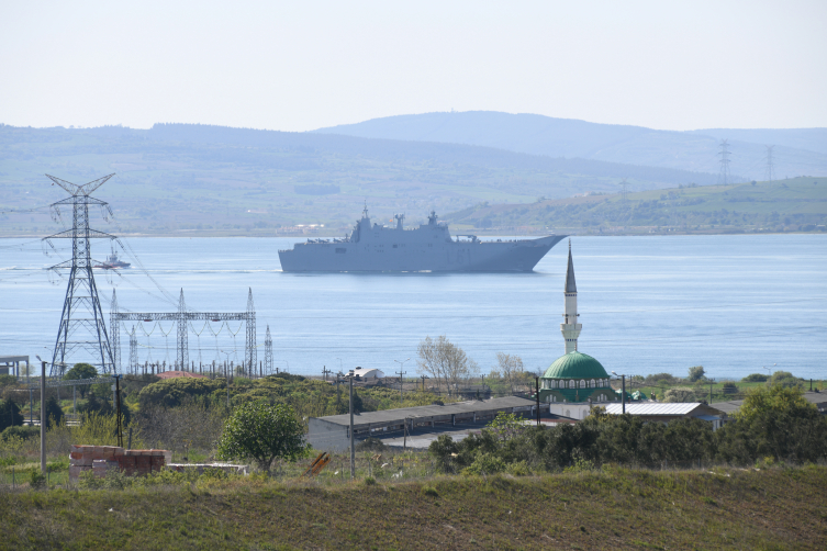 İspanya Donanması'nda görev yapan 231 metre uzunluğunda, 27 bin groston ağırlığındaki çok amaçlı amfibi hücum gemisi, Juan Carlos I (L 61), güneyden Çanakkale Boğazı'na giriş yaptıktan sonra kuzey istikametinde ilerledi.