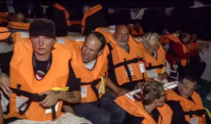 Yayında, anonslar sonrası gemilerdeki katılımcıların önceden belirlenen acil durum protokollerine göre can yeleklerini giyerek oturmuş halde beklediği görüldü.