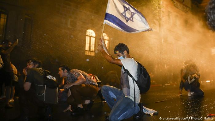 Binlerce İsrailli hükümetin korona krizinde izlediği çizgiyi eleştirmek için protesto gösterisi düzenledi. Kudüs ve Tel Aviv'de düzenlenen protesto gösterilerinde gerginlik yaşandı. Polisin göstericilere tazyikli su ile müdahale ettiği eylemlerde çok sayıda göstericinin gözaltına alındığı açıklandı. Polis bazı göstericilerin sokakları kapatmaya çalıştığını ve emniyet güçlerine karşı biber gazı kullandığını ileri sürdü.