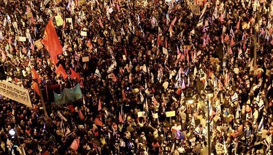 İsrail’de 23 Mart’ta yapılacak seçimler öncesi binlerce kişinin katılımıyla Başbakan Binyamin Netanyahu karşıtı gösteri düzenlendi. İsrail Meclisi önünde toplanan göstericiler, Batı Kudüs’teki Başbakanlık konutuna yürüdü. 10 binden fazla kişinin katıldığı gösteride İsrail bayraklarının yanı sıra siyah bayraklar taşındı.
