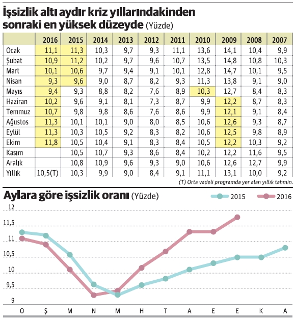Aslında geçen yılın mayıs-ekim dönemindeki işsizlik oranı, küresel kriz yaşanan yıllardan sonraki en yüksek düzeyde seyrediyor.