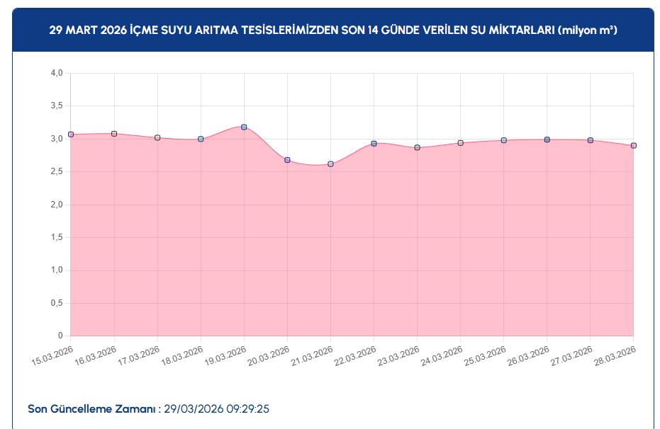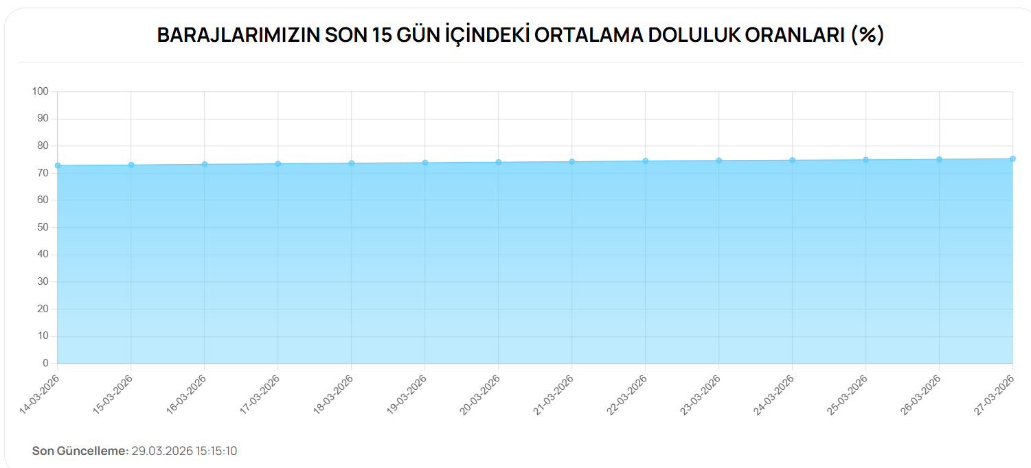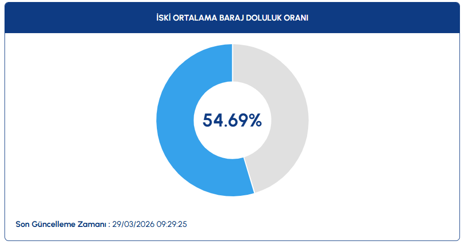 Ramazan bayramında doluluk oranları yüzde 50'yi aşan İstanbul içme suyu barajlarında doluluk oranı yüzde 55'e yaklaştı. İstanbul Su ve Kanalizasyon İdaresi (İSKİ) tarafından paylaşılan 29 Mart 2026 tarihli verilere göre, İstanbul’a su sağlayan barajlardaki ortalama doluluk oranı yüzde 54,69 olarak ölçüldü.