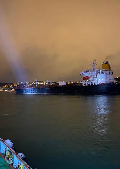 İstanbul Boğazı'nda 15 Temmuz Şehitler Köprüsü'nün altında dümeni kitlenen Liberia bayraklı Atoll isimli yakıt tankeri, korku dolu anların yaşanmasına neden oldu. Kuruçeşme açıklarında bir süre sürüklenen gemi demir atarak kıyıya metreler kala dururken, o anlar vatandaşlar tarafından saniye saniye görüntülendi.