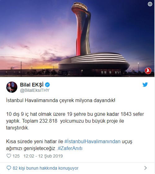 Söz konusu rakamları Türk Hava Yolları Genel Müdürü Bilal Ekşi Twitter'dan duyurdu: