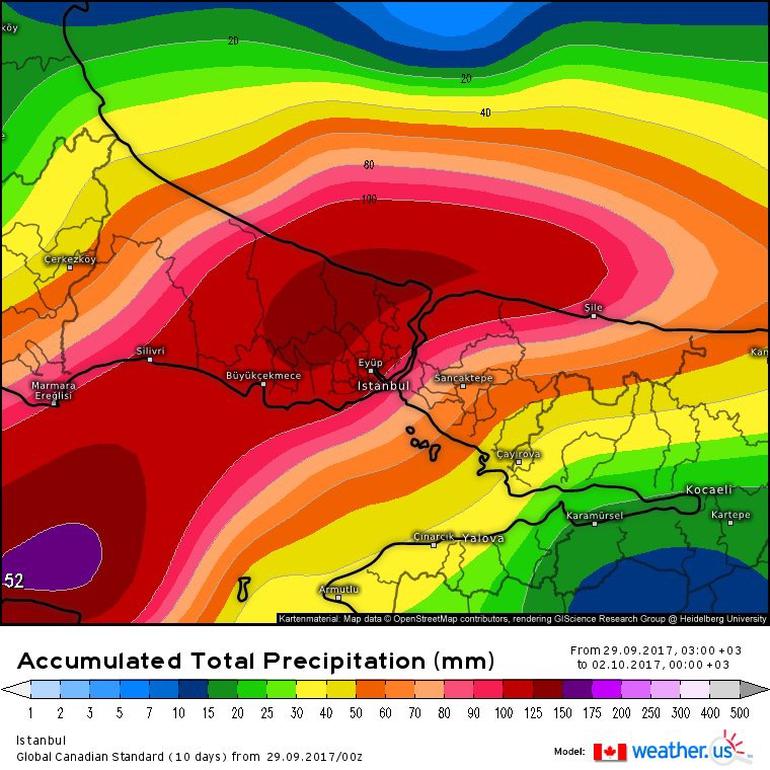 Sayısal tahmin modelleri cumartesi ve pazar günü için farklı saatlerde İstanbul'da şiddetli ve uzun süreli lokal yağışlar meydana geleceğini gösteriyor.