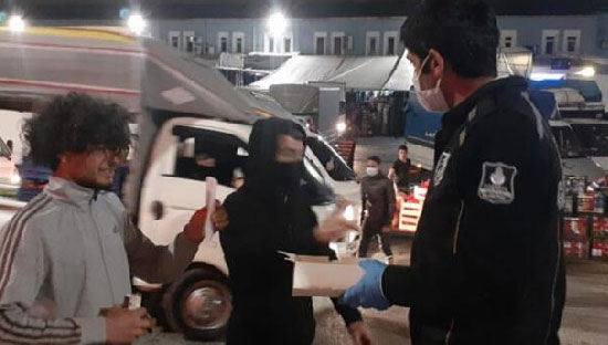 Polis ekipleri, hale gelen esnafların, hal çevresindeki yollarda bekleme yapmasına müsaade etmedi. Gelen araçlar, sebze ve meyve halinin müsait olan kapılarına yönlendirildi. Polis ekipleri kontrollü bir şekilde araçları hal içine aldı. Gelen araç sürücülerinin sosyal mesafe kuralına uyma ve maske kullanma uyarısı yapıldı. Maskesiz olan hiçbir kimse hal içine alınmazken maskesiz olanlara maske dağıtıldı. Ayrıca polis ekipleri hale giriş yapan araçların sürücülerinin ateşlerini ölçtü. Hale tedarik görmeye gelen Ercan Sasa, "Sıkı denetim olmazsa insanlar başıboş gezecek. Hastalık çoğalacak. Bu illetim gitmesi için herkes elini taşın alına koyacak" dedi.