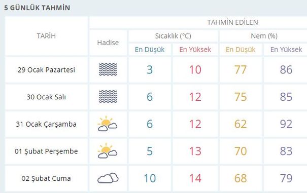 Meteoroloji Genel Müdürlüğü tarafından yapılan son hava durumu değerlendirmelerine göre; Ülkemizin kuzey ve iç kesimlerinin parçalı ve çok bulutlu, Doğu Karadeniz kıyıları ile Ordu çevrelerinin yağmur ve sağanak yağışlı, Trabzon ve Rize'nin iç ve yüksek kesimleri ile Artvin ve Ardahan çevrelerinin karla karışık yağmur ve kar yağışlı, diğer yerlerin az bulutlu ve açık geçeceği tahmin ediliyor. Bu sabah ve gece saatlerinde iç ve doğu kesimlerde buzlanma ve don olayı ile birlikte yer yer pus ve sis hadisesi bekleniyor.