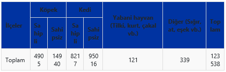 Bu başvuruların yüzde 83'ü kedi, yüzde 16'sı köpek, geri kalanı da sığır, tilki, kurt ve çakal gibi hayvanlarla temas kaynaklı oldu.