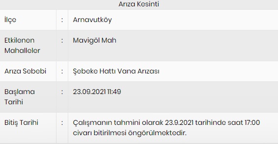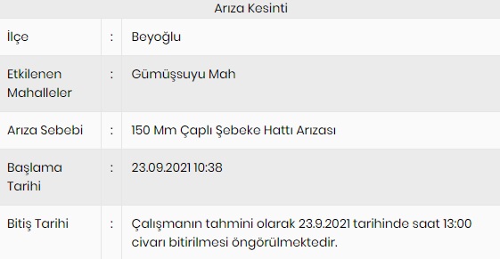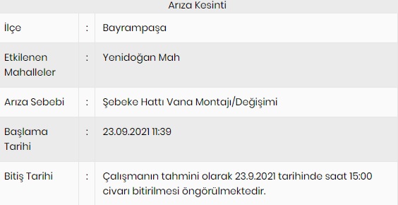 İSKİ ARIZA VE SU KESİNTİSİ DUYURULARI (23 EYLÜL)