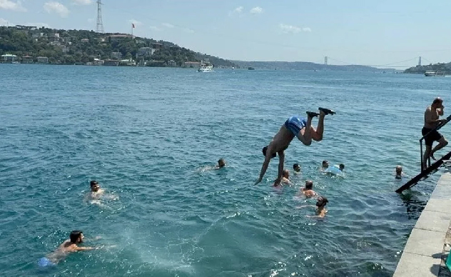İstanbul’da artan nem oranıyla etkisini daha çok gösteren sıcak hava kent sakinlerine bunaltıcı bir gün yaşatırken serinlemek isteyenler çareyi denize girmekte buldu.