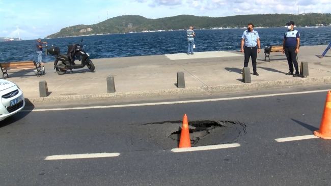 Tarabya Sahili Haydar Aliyev Caddesi'nde saat 15.30 sıralarında yolda kısmı çökme meydana geldi.