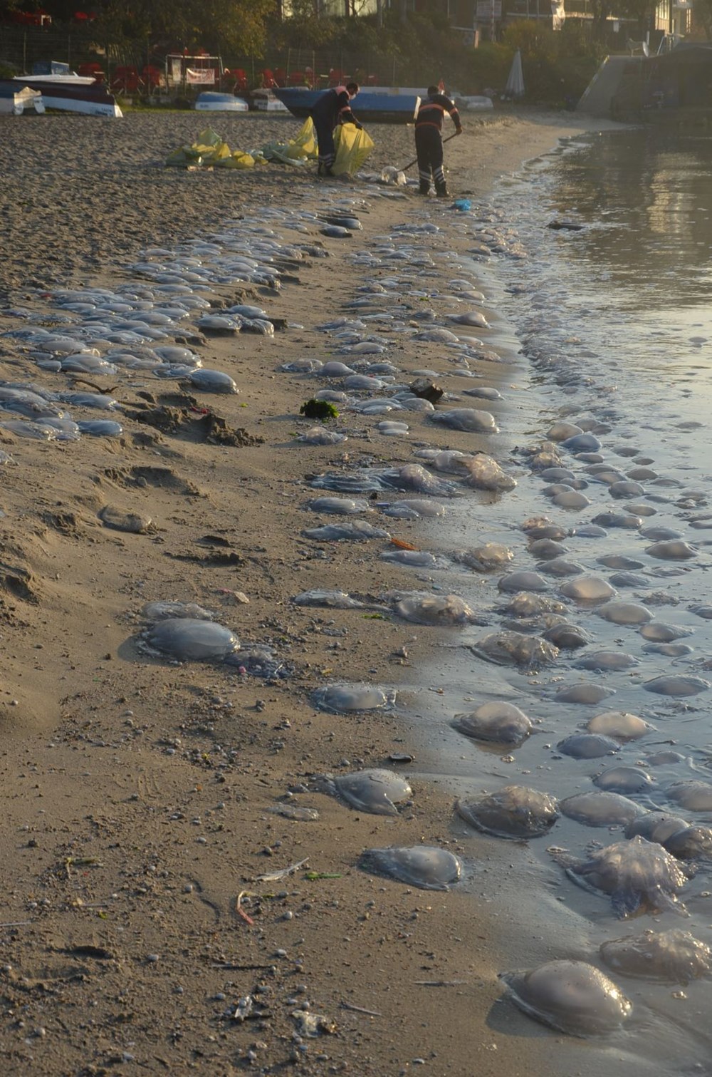 Avcılar sahiline cuma günü inenler gördükleri karşısında şaşırdı. Binlerce büyük denizanasının kıyıdaki kum veya kayalıkların yanına geldiği, sahili doldurduğunu görenler bunları korku yaşadı.