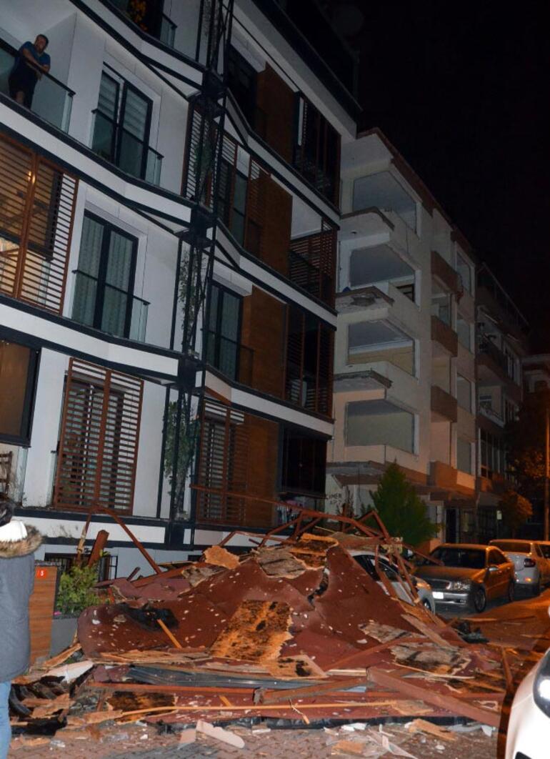 Gürsel Mahallesi Atiye Sokak'taki 3 katlı binanın çatısı fırtınanın etkisiyle uçarak yan taraftaki iş yerinin çatısına uçtu. Çatılarda hasar oluşurken itfaiye ekipleri enkazı kaldırdı.