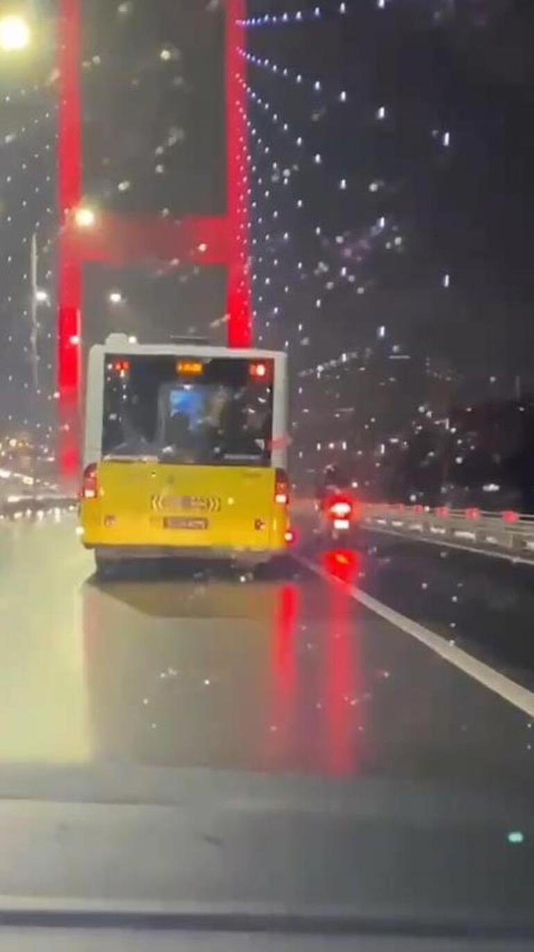 Şiddetli fırtına nedeni ile 15 Temmuz Şehitler Köprüsü'nü geçmekte zorlanan bir motosiklet sürücüsünün yardımına İETT otobüsünün şoförü koştu. Sürücüye eşlik ederek rüzgarı kesti.