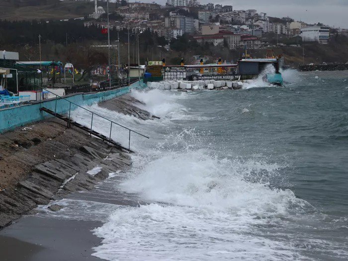 Marmara Denizi'nde sabah saatlerinde başlayan lodos, Tekirdağ'da deniz ulaşımını olumsuz etkiliyor.