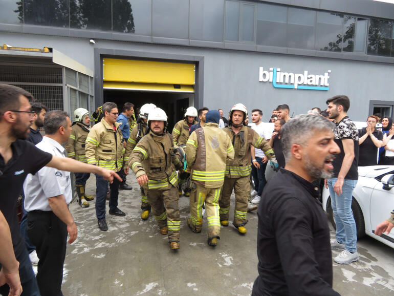 Yaralı , arkadaşları tarafından ambulansa taşınarak hastaneye kaldırıldı. Yangını gören kişi "Diş implantı yapan bir iş yeri. Kaynak yaparken taşlamadan çıkmış. Yangında çatıdan düşen bir itfaiye eri yaralandı, başka yaralı yok" dedi.