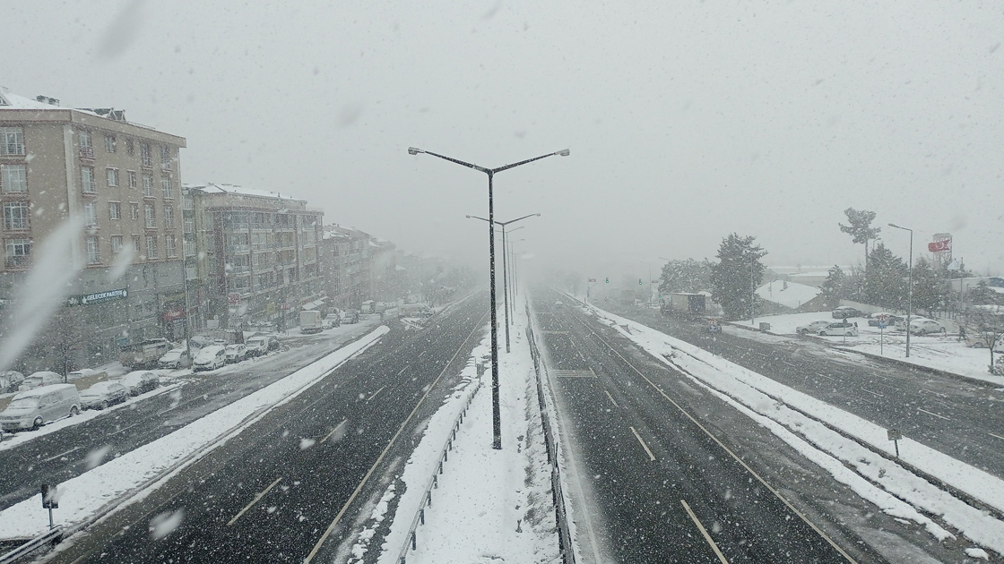 Trafik akışının yavaşladığı, sürücülerin tipi şeklindeki yağışın etkisiyle araçlarının flaşörlerini yakarak ilerlemeye çalıştığı gözleniyor.