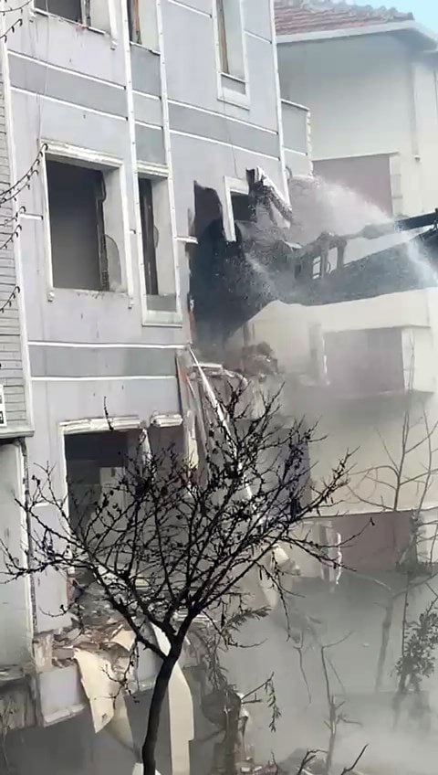 Olay, dün öğle saatlerinde Ambarlı Mahallesi'nde meydana geldi. Kentsel dönüşüm kapsamında bir süre önce boşaltılan binanın kontrollü şekilde yıkımına başlandı. İş makineleriyle ikinci kat seviyesinde yapılan yıkım sırasında bina büyük bir gürültüyle çöktü. Çökme anında manevra yapmaya çalışan iş makinesi ve beton kesme makası kısmen enkaz altında kaldı.