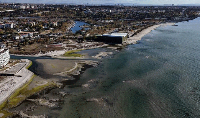İstanbul Küçükçekmece Menekşe Sahili’nde deniz suyunun çekildiği görüldü. Deniz suyunun çekilmesiyle sahilde küçük adacıklar ortaya çıktı, balıkçılar ise denize açılamadı. Sahilin son durumu havadan görüntülendi.